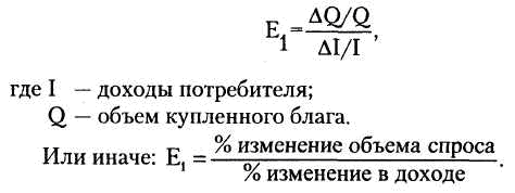 Коэффициент эластичности спроса по доходу - это показатель эластичности спроса по доходу, посредством которого измеряется данный вид эластичности. Коэффициент эластичности спроса по доходу есть отношение относительного изменения объема спроса на благо к относительному изменению дохода потребителя. Он рассчитывается по формуле: