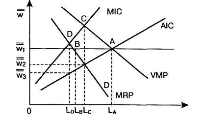 Рис. 39.1. Принятие решений о найме монопсонистом Власть монопсонии, сочетающаяся с монопольной властью на рынках готовой продукции. Когда фирма обладает и властью монопсонии на рынках рабочей силы, и монопольной властью на рынках ее готовой продукции, работники находятся в наихудшем положении (рис. 39.2).