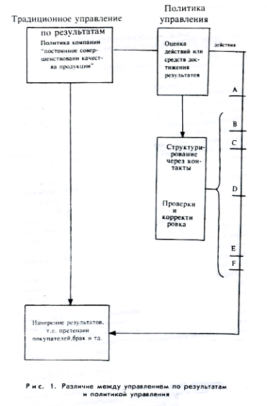 ЛОУРЕНС П. СУЛЛИВАН Идея должна укреплять компанию благодаря межфункциональному структурированию изделия и политики управления. Основополагающую идею СФК, возникшую в Японии, в промышленность США ввел Дон Клозинг из Массачусетского Технологического Института. Компания Форд Мотор и несколько фирм-поставщиков стали зачинателями разработки СФК как рабочего механизма перевода ожиданий покупателей в конкретные требования при проектировании и в производстве. Первый автомобиль США, крторый обязан своим успехом этой формализованной процедуре СФК, был "Линкольн Континенталь" 1988 года. Уильям Э. Сколлард, вице-президент по производству компании Форд, в своем недавнем выступлении охарактеризовал СФК просто как средство "выпускать автомобили для тех, кто ими пользуется, а не для тех, кто их производит". В прошлом промышленность США концентрировала свое внимание больше на удовлетворении технических требований или требований компании и меньше на ожиданиях покупателя. Теперь задача такова: "Превратить ожидания покупателя в технические требования, объединяющие все функции компании в общую сеть условий рабочей нагрузки". С точки зрения компьютеризации многие компании США (особенно Форд) добились значительных успехов во внедрении СФК для усовершенствования продукта; есть целый ряд примеров, показывающих, как матричные карты или бинарные таблицы помогли органически соединить множество разнообразных действий внутри компании или подразделения. Совершенно новая для компании США идея - политика управления или программное обеспечение, в которое введены средства достижения целей. Использование матриц или бинарных таблиц для оценки взаимодействия средств и целей, к которым стремится компания, называется теперь политикой управления с помощью СФК. Политика управления.Традиционно в компаниях США сложился стиль управления по результатам, в основе которого лежит бихевиаристика. Для руководства характерно устанавливать цели - скажем, повысить качество на 10%. Затем надо оценить проделанную работу по измеримым результатам. Это называется целевым управлением. Высшее руководство редко проявляет интерес к средствам улучшения качества - только к результатам. Методы, системы или возможности (средства), потребные для достижения поставленных целей, предоставляются изобретательности руководителей среднего звена или инженеров. Политика управления, следовательно,- это стратегия, обеспечивающая достижение поставленных целей на основе концентрации внимания на средствах, в отличие от измерения результатов post factum. На рис. 1 показано это различие.
