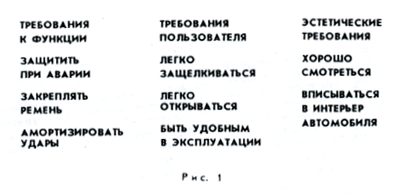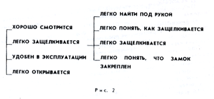 Поиск требований покупателя.Для установления требований покупателя используется комбинация двух основных методов: 1) Сбор доступной покупательской информации. Большинство компаний имеют доступ к некоторой покупательской информации. Это обычно негативная информация, такая как статистика случаев нарушения гарантии, ремонты и претензии. Эти сведения следует дополнить другими видами информации, чтобы сформировать информационную систему, включающую потребности покупателя, его желания и ожидания. Чтобы собрать эту информацию, требуется проследить за нормальным покупателем, а также периодически подробно беседовать с несколькими новыми или взыскательными покупателями. Накопленную покупательскую информацию удобно структурировать в виде "дерева" для продукта, который мы опишем ниже. 2) Творческие искания членов команды. Для отыскания полной системы потребительских желаний и ожиданий покупателя проводится "мозговой штурм", который сопровождается процессом сортировки. Во время "мозгового штурма", который обычно продолжается 5-10 минут, каждый участник должен написать все возможные требования покупателя на отдельной карточке. После того как все закончат запись всех возможных требований покупателя, вся группа пытается объединить эти требования в различные содержательные блоки. На рис. 1 можем видеть, что требования покупателя к замку ремней безопасности можно сгруппировать с учетом функции использования и внешнего вида. Затем требования располагают в виде дерева, где основные из них разукрупняются в подтребования. Например, легкость защелкивания делится на следующие подгруппы: замок легко найти, понять, как он защелкивается, выполнить само защелкивание и понять, что замок сработал. Теперь требования покупателя заносятся в левую часть матрицы, отмеченную цифрой 1)
