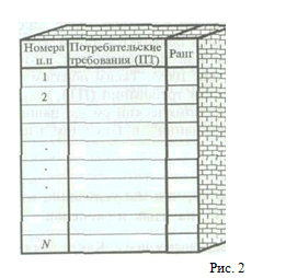 При большом числе потребительских требований такие турниры становятся очень трудоемкими операциями. В каждом турнире бывают команды, которые занимают первое, второе и т. д. места и мы можем эти места рассматривать как способ введения порядка на множестве потребительских требований. Требование, занявшее первое место, очевидно, самое важное, а то, что заняло последнее место - тоже важное, но уступает первому по важности. Это означает, что когда мы будем разрабатывать свою продукцию, то повышенное внимание уделим более важному требованию. Смысл ранжирования - понять, каким потребительским требованиям надо уделять больше внимания. Так уж в природе заложено, что не существует объекта, удовлетворяющего всем требованиям. Причем в разных сегментах рынка одной и той же продукции ранжировки будут разными. Мы договорились, что в столбце "Ранг" против каждого потребительского требования появляется число, которое обычно составляет долю единицы или проценты, так, что сумма всех рангов равняется единице или 100%. Таким образом, у нас теперь есть и список потребительских требований (ПТ), и столбец рангов. Обратите внимание на экономический смысл наших действий. Распределение нашего "внимания" в конечном счете влияет на нашу рыночную нишу.