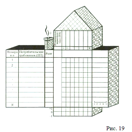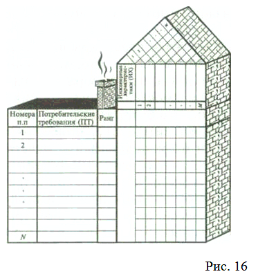 Об относительной важности инженерных характеристикМожем сделать следующий шаг. Но прежде нарисуем одну необязательную деталь (рис. 16). У всякого дома должна быть труба, и японцы действительно такую трубу рисуют. И когда они впервые начали об этом рассказывать на международных конференциях, то очень многие люди им задавали вопрос, зачем это нужно, и вообще, зачем этот "дом", почему все материалы нельзя скомпоновать, как обычные рабочие таблицы и пользоваться ими, как все нормальные люди. И вот что ответили хитроумные японцы: "Всякое дело, которое делается слишком серьезно, обречено на неудачу". Мы должны получать удовольствие от всего, что мы делаем. И если этого нет, то надо остановиться и подумать, что надо сделать, чтобы это состояние возникло.