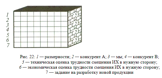 Итак, мы получили таблицу, которая представляет собой своего рода словарь, переводящий потребительские требования (ПТ) в инженерные характеристики (ИХ), т.е. перевод "голоса потребителя" в техническое задание на проектирование, разработку продукции. Дальше, мы построили график, который позволил выяснить, какие из инженерных характеристик играют доминирующую роль с точки зрения того сегмента рынка, где мы собирали мнение потребителей, потенциальных или реальных. Далее выяснилось, что для полного счастья нам не хватает "верандочки", которую мы пристроили и использовали для того, чтобы провести сравнение или бенчмаркинг для своей текущей продукции и текущей продукции двух наших главных конкурентов (А и В). Теперь получились некие картинки, они называются профилограммами (или профилями) фирмы, которые позволяют в удобной и наглядной форме представить информацию о том, какие аспекты разработки у нас хорошо организованы с точки зрения рынка. О них можно пока особенно не волноваться и не вкладывать слишком много времени и денег в совершенствование с точки зрения этих показателей. Зато вполне вероятно, что мы выявим те потребительские требования, по которым у нас дела идут не очень хорошо, и это та область, где нам предстоит как следует поработать. Туда стоит вкладывать время и деньги. Далее выяснилось одно обстоятельство, что ИХ не свободны друг от друга, они коррелированы и поэтому нам пришлось специально, чтобы "крыша не поехала", отразить в треугольной, относительно главной диагонали, части квадратной матрицы информацию о том, какие ИХ с какими связаны. Когда мы рассматриваем результаты на графике (см., например, рис. 7), мы видим, что какую-то эту ИХ следует делать как можно больше и тогда потребитель будет удовлетворен. А другую - следует делать меньше для удовлетворения того же потребителя. И вот когда возникает такая ситуация, мы смотрим наверх, на треугольную крышу и пытаемся выяснить, существует ли между этими характеристиками какая-либо связь. Потому что, если она существует, это будет означать, что наше стремление увеличить одну ИХ будет приводить к движению в какую-либо сторону другую ИХ в силу корреляции между ними. А потребитель хочет, например, чтобы движение было в противоположную сторону. Это типичная коллизия, возникающая в процессе разработки продукции. Разработчики этого подхода рекомендуют для преодоления противоречия использовать творческий метод решения проблемы [18- 20]. И нам надо создать группу (команду) из людей, понимающих эту ситуацию, и поставить перед ними проблему, как преодолеть найденное противоречие. Фирма Тойота, которая была пионером в области внедрения этой методологии, сообщила, что благодаря такому анализу противоречий, было сделано выдающееся изобретение в автомобилестроении - керамические корпуса двигателей. Проблема состояла в том, что для удовлетворения требований рынка надо было одновременно увеличивать прочность и снижать электропроводность корпуса двигателя, а в классе сплавов это сделать не удавалось. И тогда появилась идея перейти к диэлектрикам, керамике. Были разработаны керамические составы, по прочности не уступающие сплавам, и из них стали делать корпуса двигателей. И противоречие было преодолено. Таким образом, каждое из этих противоречий есть задача, которую имеет смысл ре