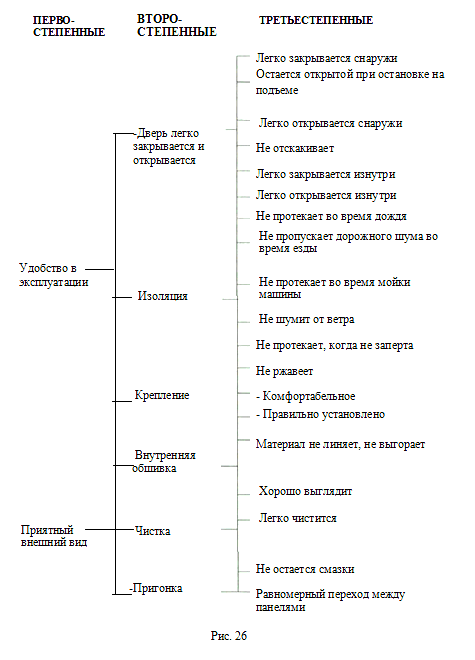 Как перевести то, что мы услышали от потребителя, на язык инженеровПереходим к следующему шагу. Как и предыдущий, его выполняет специальная команда, создаваемая для данного случая. Одновременно с опросами и обработкой их результатов и пока независимо от них, создается другая команда (группа людей) - для проектирования будущей продукции. Эта команда занимается разработкой инженерных характеристик (ИХ) нашего будущего изделия. И перед ней на первом этапе работы ставится задача - составить список ИХ будущего изделия (как называется изделие, не имеет никакого значения). Эта команда готовит список характеристик, важных с их точки зрения, и предлагает его в качестве результата первого этапа. Мы берем этот список и представляем в том же виде, что и список потребительских требований (рис. 3), но "лежа на боку".