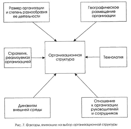 Выбор той или иной организационной структуры зависит от целого ряда факторов. Наиболее значимыми являются следующие факторы (рис.):
