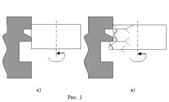 Например, в задаче 24 рисунок к шагу 3.3 обычно выглядит так, как показано на рис. 1,а: выделен внешний слой круга, который по структуре ничем не отличается от центральной части круга. На рис. 1,б показан тот же рисунок, но сделанный с использованием ММЧ. Маленькие человечки, соприкасающиеся с обрабатываемой поверхностью, удаляют частицы металла, а другие человечки придерживают "работников", не давая им вылететь из круга, упасть, быть отброшенными. Меняется глубина впадины - соответственно перестраиваются человечки. Рассматривая левый рисунок, не так просто прийти к выводу о необходимости раздробить наружную часть на "зерна" сделав эти зерна подвижными и в то же время "цепляющимися" за круг. Правый рисунок приводит к этой идее.