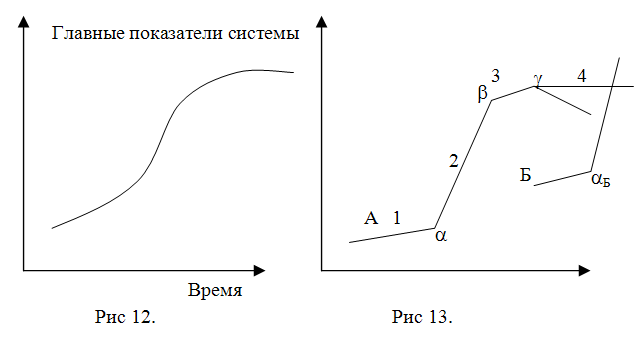 Главы из книги "Творчество как точная наука" Г. С. Альтшуллер, 1979Жизнь технической системы (как, впрочем, и других систем, например, биологических) можно изобразить в виде S-образной кривой (рис. 12), показывающей, как меняются во времени главные характеристики системы (мощность, производительность, скорость, число выпускаемых систем и т. д.).