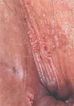 Остроконечные кондиломы (Condylomatis acuminatem). Синонимы: папилломы вирусные, бородавки генитальные, бородавки остроконечные. Мелкие сосочкоподобные папулы на тонкой ножке, мягкие, нитевидные, с остроконечной поверхностью, телесного или розоватого цвета; со временем могут темнеть. При длительном существовании разветвляются, разрастаются и сливаются, образуя очаги, напоминающие петушиный гребень. Обычно локализуются на наружных половых органах, в пахово-бедренных, межъягодичных складках и в области ануса. Описаны и другие локализации. Путь заражения - контактный; преимущественно половой. Практически в каждом случае удается связать начало заболевания со случайным половым контактом. Считается, что остроконечные кондиломы, чаще встречаются у мужчин, реже - у женщин, в исключительных случаях - у детей. По нашим наблюдениям, мужчины и женщины болеют остроконечными кондиломами с одинаковой частотой, у детей они встречаются реже. Для остроконечных кондилом характерны быстрый рост, диссеминация, "ползучий" и контактный тип распространения, воспаление и присоединение вторичной инфекции, поражение труднодоступных осмотру участков (вульва, влагалище, прямая кишка, уретра) и даже внутренних органов (мочевой пузырь). При обнаружении они требуют детального осмотра с привлечением соответствующего оборудования и специалистов. Отмечаются четкие корреляции между картиной клинического течения и состоянием иммунитета. Остроконечные кондиломы чрезвычайно часто рецидивируют. Ред. C. Дaнилoв Вся информация в разделе: Заболевания кожи |
