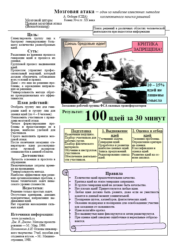 Сборник «200 эффективных инструментов создания инноваций» уникальное, единственное в своём роде издание, объединившее описания большинства известных отечественных и зарубежных методов.