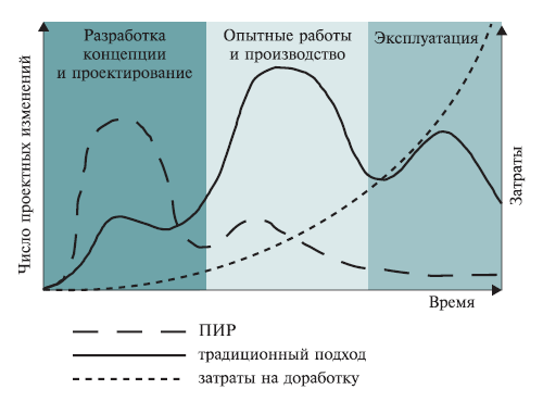 Особенности методаИдеи параллельных инженерных разработок (concurrent engineering, реже simultaneous engineering) при их воплощении в жизнь позволяют значительно сократить срок и разработки продукции (до 70%) и внесения изменений (65-90%). Достижению подобных результатов способствует два основных приема: интеграция и параллелизм. Интеграция означает, что специалисты функциональных подразделений, вовлеченных в процесс ПИР, и другие заинтересованные лица должны работать в тесной взаимосвязи (от разработки концепции продукции до ее поставки и последующей утилизации). Такая интеграция усилий реально отражается на улучшении качества конечной продукции. Параллелизм автоматически сокращает сроки разработки продукции и внесения изменений, так как решение задач выполняется параллельно, а не последовательно. При ПИР многие проблемы, которые могут возникнуть на более поздних стадиях жизненного цикла, выявляются и решаются на стадии проектирования. Реализация этого подхода требует тщательного подбора комплексной команды разработчиков KKР из представителей конструкторской, технологической, производственной, испытательной и сервисной служб предприятия. На KKР возлагается коллективная ответственность за выполнение работы по созданию и поставке конечной продукции. Предполагается, что команда должна параллельно решать разнообразные специальные конструкторские задачи, обеспечивающие достижение целей разработки. Каждая подобная задача связана с реализацией определенных жизненно важных конструкторских требований, в свою очередь влияющих на ряд других требований. Именно эти взаимосвязи зачастую упускают из вида при традиционном, последовательном подходе к разработкам новой продукции. ПИР гарантирует исполнение всей совокупности требований к продукции, что обеспечивает удовлетворение запросов потребителей, соблюдение требований законодательства, оптимальную производственную технологичность продукции.